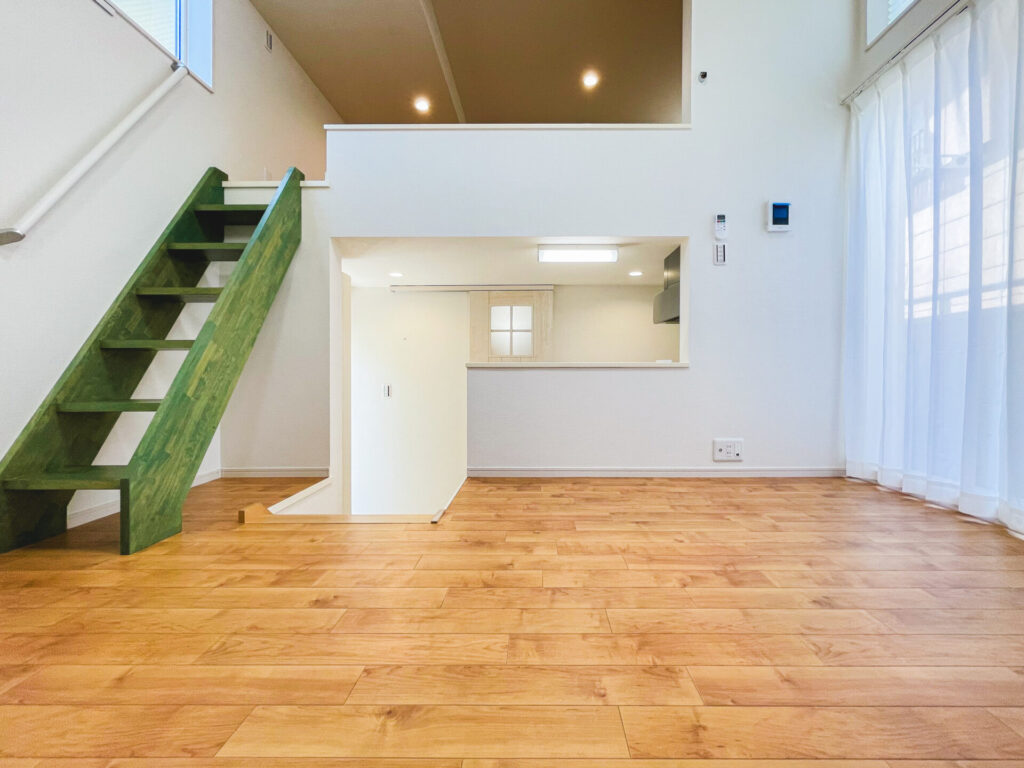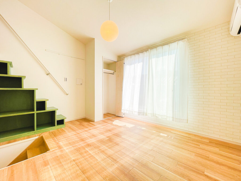 ロフトへの階段はアクセントカラーにもなるので、ご入居者様には様々なインテリアを楽しんでいただけます。